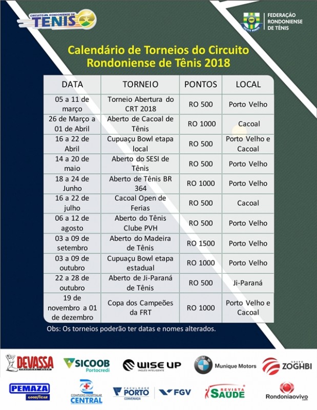 Os torneios poderão ter datas e nomes alterados