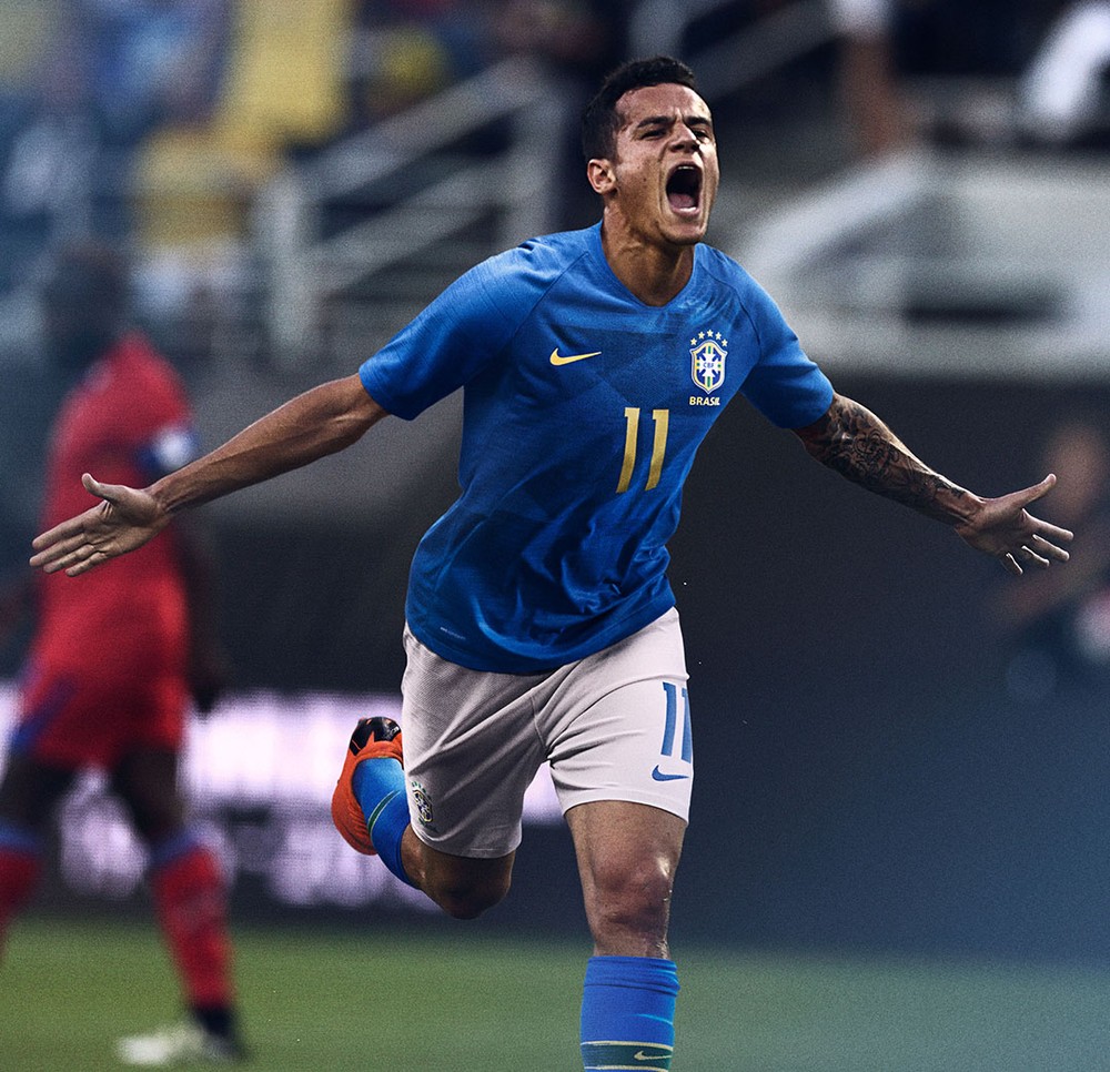 Daniel Alves e Marquinhos deram o "spoiler" na véspera, mas agora é oficial: a Seleção já tem roupa para buscar o hexa na Rússia. A CBF e a Nike divulgaram na manhã desta quarta-feira os uniformes que o Brasil usará na Copa do Mundo, em ação promocional com Neymar, Philippe Coutinho, Daniel Alves, Marquinhos, Thiago Silva e Paulinho. A camisa titular terá um amarelo vibrante, com golas verdes, e vai estrear no amistoso de semana que vem com a Alemanha. A reserva, azul como de hábito, vai ser usada pela primeira vez no duelo da próxima sexta-feira com a Rússia em Moscou.