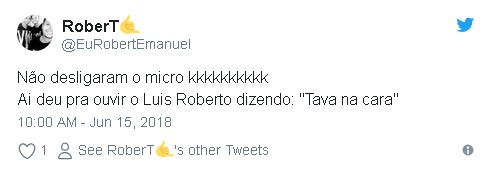 No momento em que a vinheta do Mundial entrava no ar, o microfone de Luis Roberto ficou aberto. “Tava na cara”, disse o narrador sobre a vitória uruguaia no fim com gol de José Gimenez aos 44 minutos do segundo tempo.