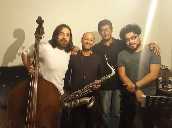 Mauro Araújo acompanhado de Agustin Moya (sax tenor), Carlos Cortez (bateria) e Fede Faure (baixo) se apresenta no Thelonius Casa de Ja – Foto: Arquivo Pessoal