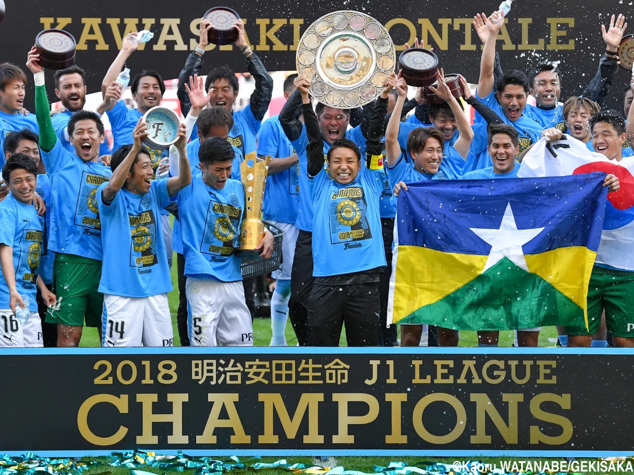 No último minuto, Yamamura surpreendeu e deu a vitória ao Cerezo por 2x1, o que não estragou a festa dos visitantes. Apesar de ter perdido uma invencibilidade de sete jogos, o Kawasaki sagrou-se campeão. Desde a conquista do Sanfrecce Hiroshima em 2012, um título da J1 não era decidido de forma antecipada. Coube ao zagueiro Shogo Taniguchi a honra de levantar o troféu primeiro (foto acima), já que o capitão Yu Kobayashi estava lesionado e só assistiu ao jogo das tribunas.