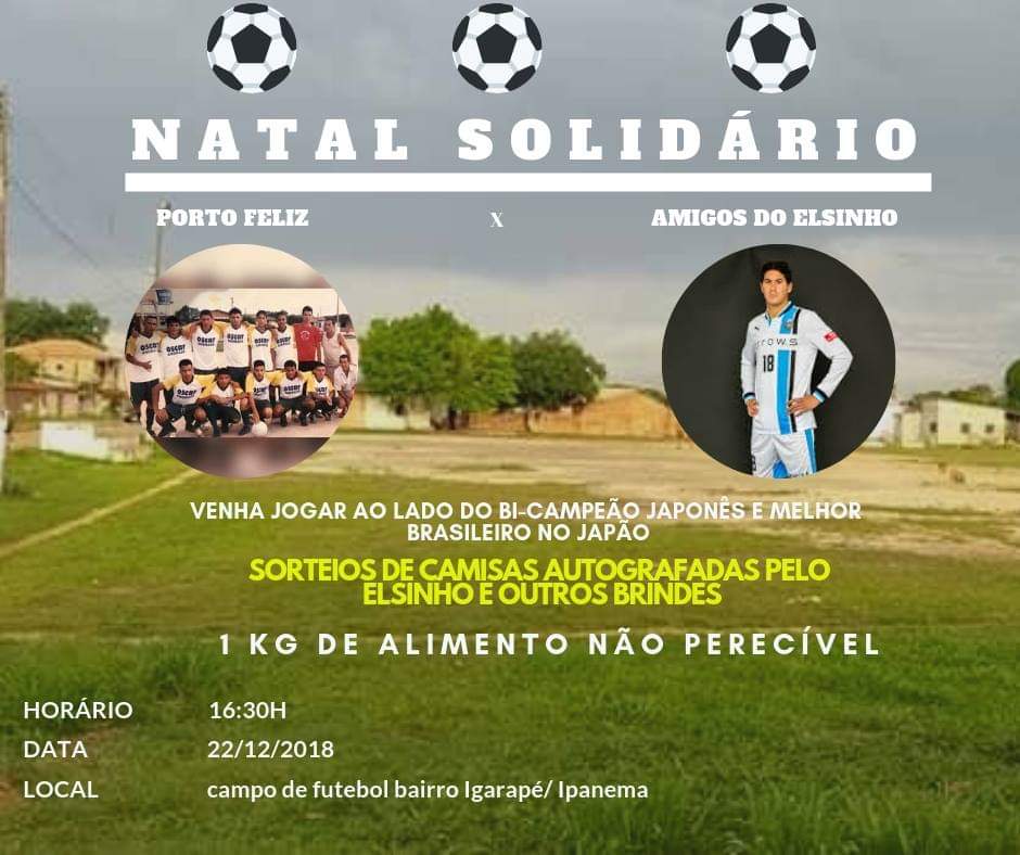 O jogador Elsinho, de férias no Brasil esteve em Porto Velho, onde realizou compromissos sociais em diversas comunidades e bairros. “Elsinho esteve em várias escolinhas, ao lado dos amigos no campo do Igarapé/Ipanema e agora tirou cinco dias ao lado da família para dar uma descansada”, comenta Eudes Araújo, pai do atleta que está em Fortaleza (CE) e retorna para o evento do próximo dia 22, o Natal Solidário.