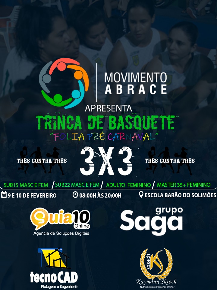 Com a intenção de angariar recursos para participação dos campeonatos nacionais, estão promovendo este final de semana, o torneio 3x3 na escola Barão dos Solimões. Informações: (69) 9.9204-4601 Profa. Kayman.