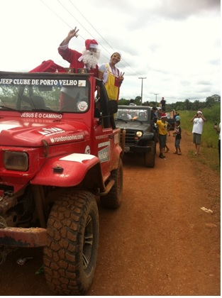 Os participantes da trilha seguem em comboio para um bairro da periferia, onde o Grupo Ajudar realiza uma grande ação social. As cestas básicas arrecadadas são entregues aos voluntários que, previamente, cadastraram as famílias que precisam do alimento. Cabe ao Jeep Clube também levar o Papai Noel para a alegria das crianças.