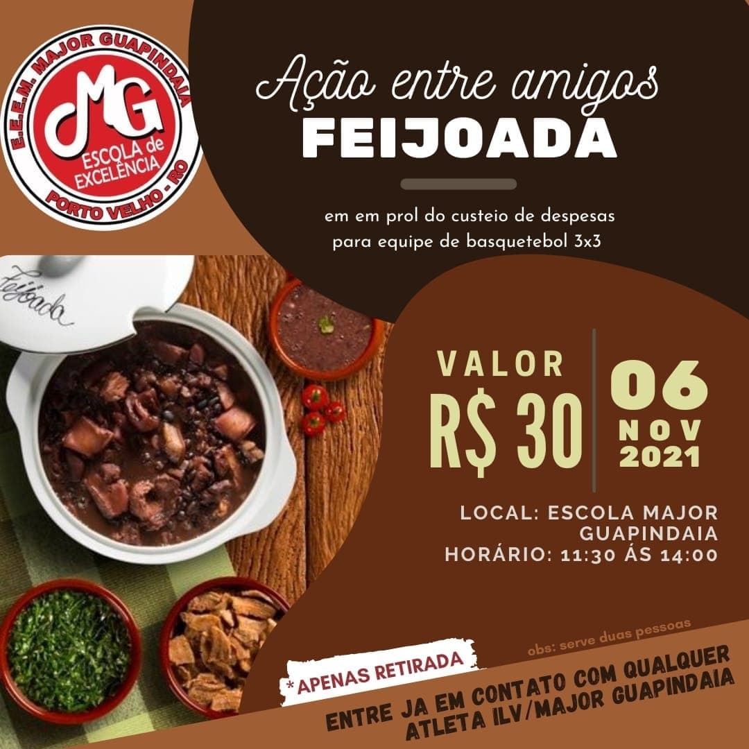 Alunas do time de basquete 3 x 3 da Escola Estadual Major Guapindaia, de Porto Velho, realizam a venda de feijoadas durante o sábado (06), das 11:30 até às 14 horas.