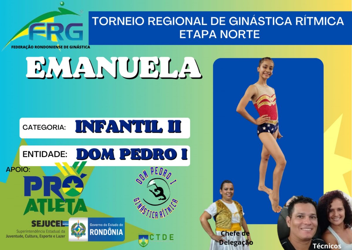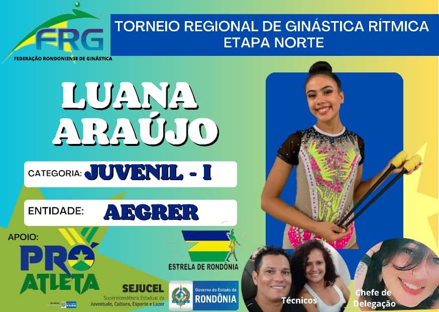 Pela primeira vez Rondônia participará da competição com dois árbitros estaduais na composição da Banca de Arbitragem, sendo: Juscimara Campos (Presidente da Federação Rondoniense de Ginástica – FRG e Árbitra Estadual) e Edney Zanchin ( Fisioterapeuta e Árbitro Estadual). Graças ao apoio incondicional da Confederação Brasileira de Ginástica e do Governo do Estado de Rondônia – SEJUCEL – Programa Bolsa Atleta.