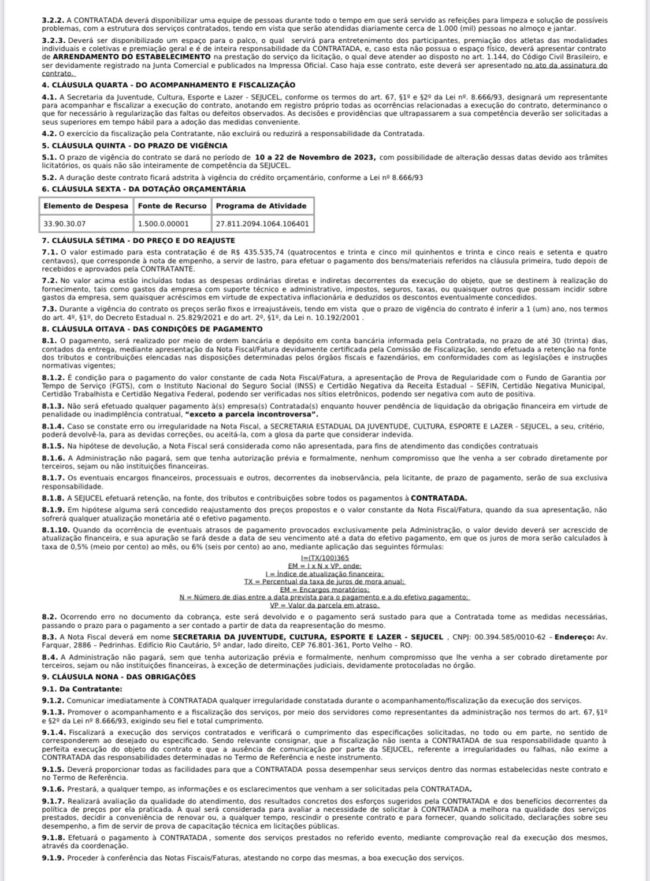 Todas as contratações ligadas aos Jogos Intermunicipais de Rondônia seguiram a legislação vigente, priorizando a melhor qualidade dos serviços e a segurança.