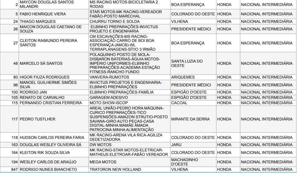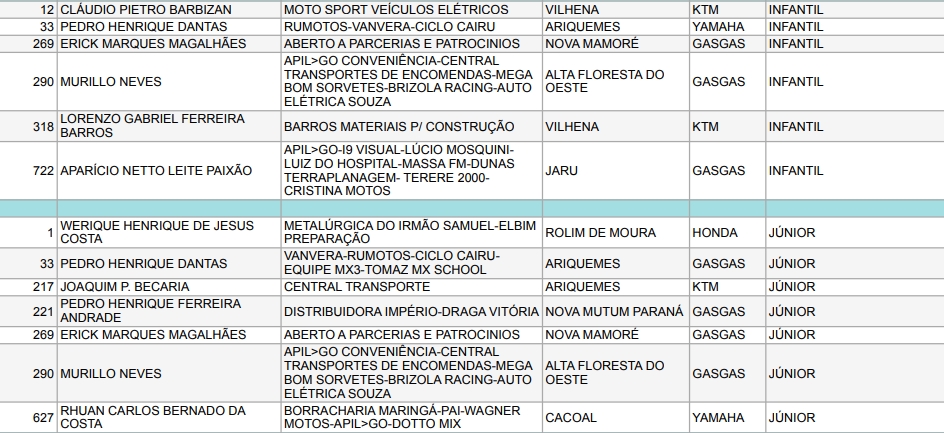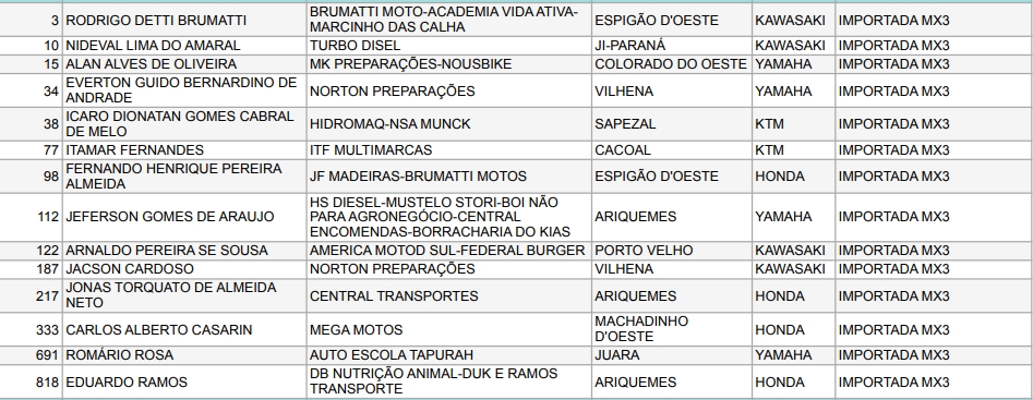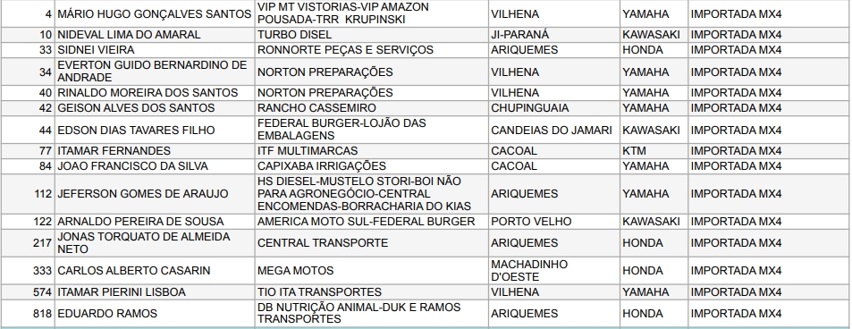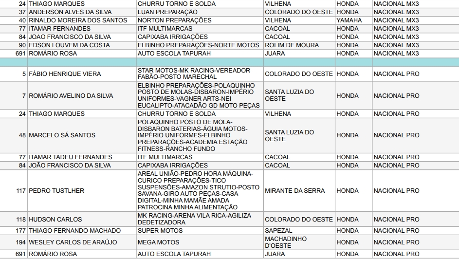 Confira abaixo os pilotos e as empresas que apoiam o Motocross de Rondônia: