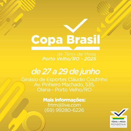 A Copa Brasil de Tênis de Mesa Etapa Porto Velho irá acontecer entre os dias (27) e (29) de junho na capital.
