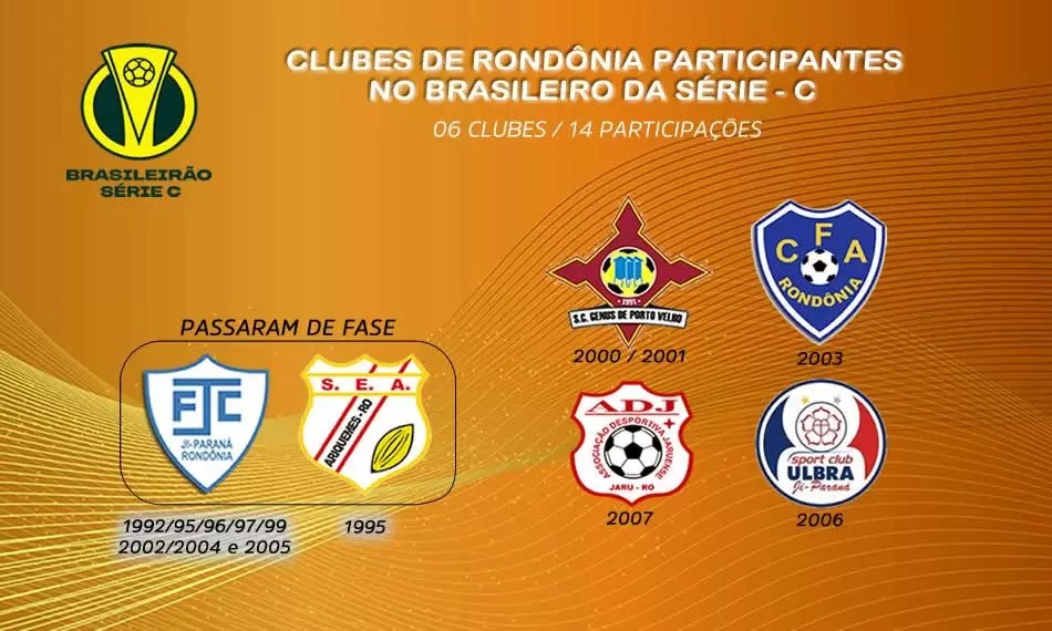 Seis clubes de Rondônia disputaram a Série C do Brasileiro entre os anos de 1992 e 2007: Ji-Paraná (1992/95/96/97/99/2002/2004 e 2005); Ariquemes (1995); Genus (2000 e 2001); CFA (2003); Ulbra Ji-Paraná (2006) e A.D. Jaruense (2007).