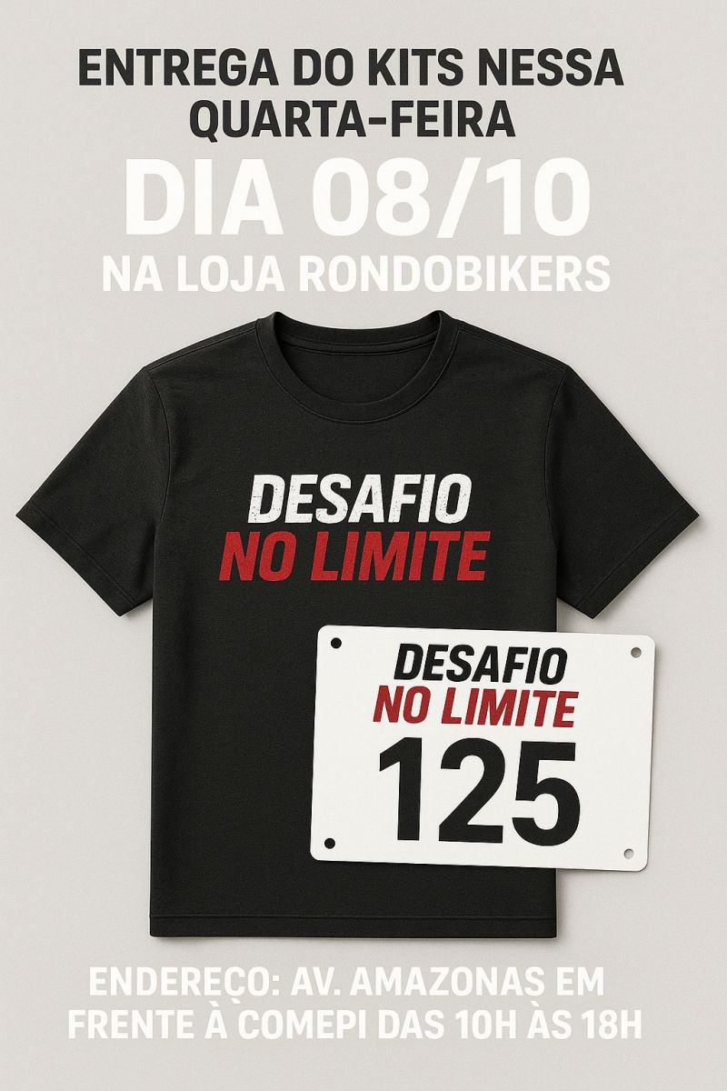 Nesta quarta-feira (08), das 10:00 às 18:00, na Loja Rondobikers, localizada na Av. Amazonas, em frente à COMEPI.