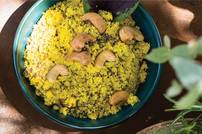 Se achar que está muito seca, coloque um pouco mais de manteiga. Se, por outro lado, perceber que a farofa está muito gordurosa, coloque um pouco mais de farinha.