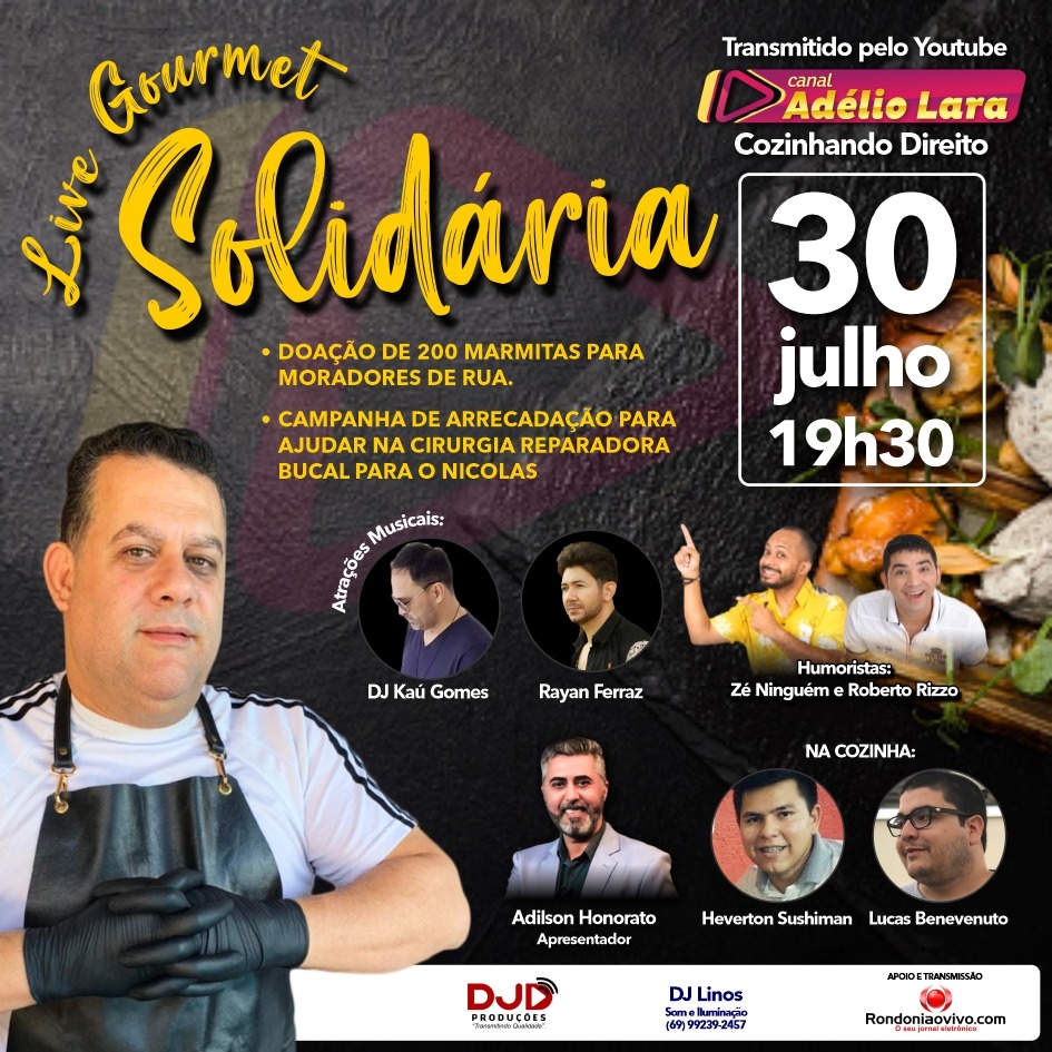 Não esqueça dia 30/07/2021 às 19:30h Live Gourmet Solidária aqui no Canal Adélio Lara