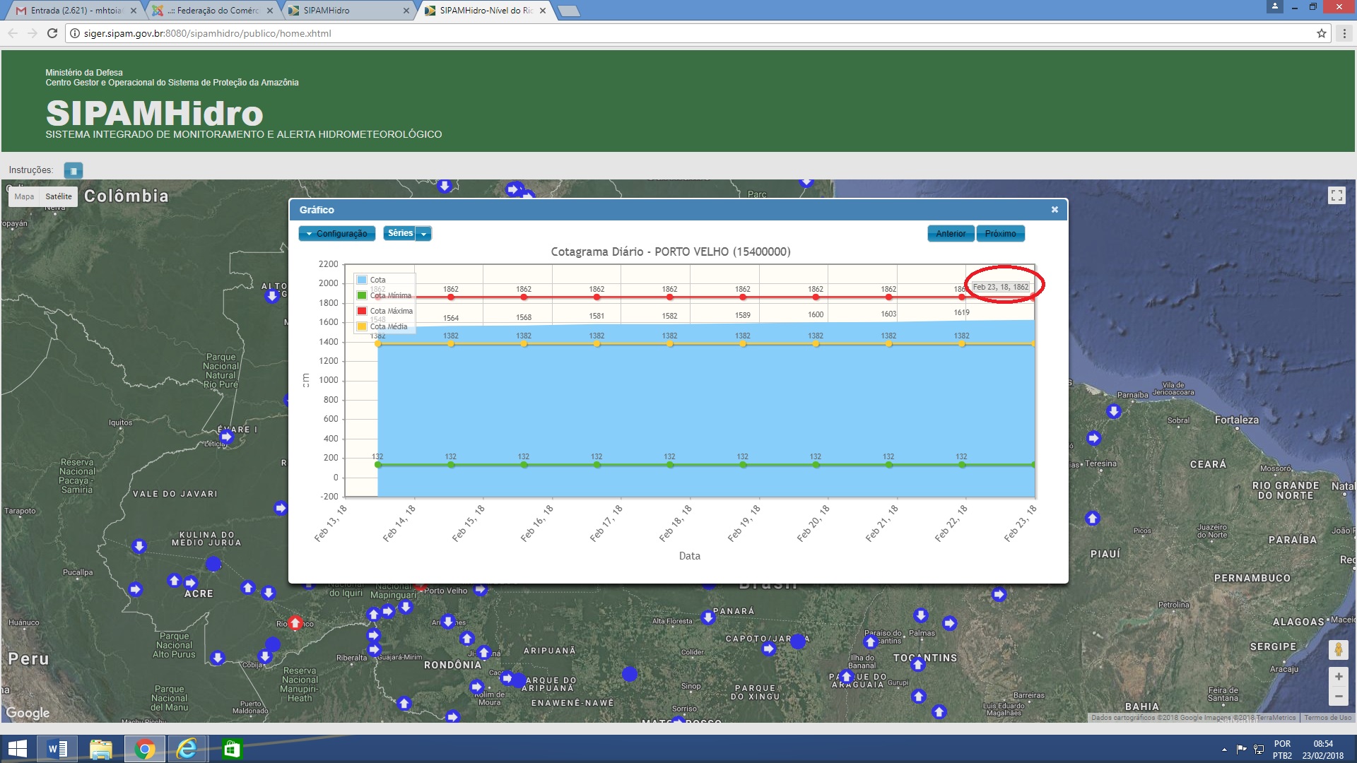 O nível do rio Madeira segue subindo diariamente, segundo monitoramento feito pelo Sistema de Proteção da Amazônia (Sipam). Na manhã desta sexta-feira (23), a lâmina do rio, em Porto Velho atingiu a casa dos 16,25m, um crescimento de mais de vinte centímetro em média, nos últimos dez dias.