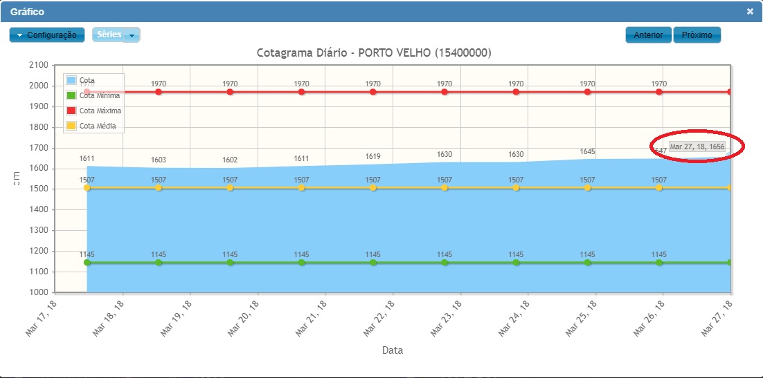 O nível, no entanto, está dentro do previsto pela Defesa Civil para 2018, que é de até 17,2m
