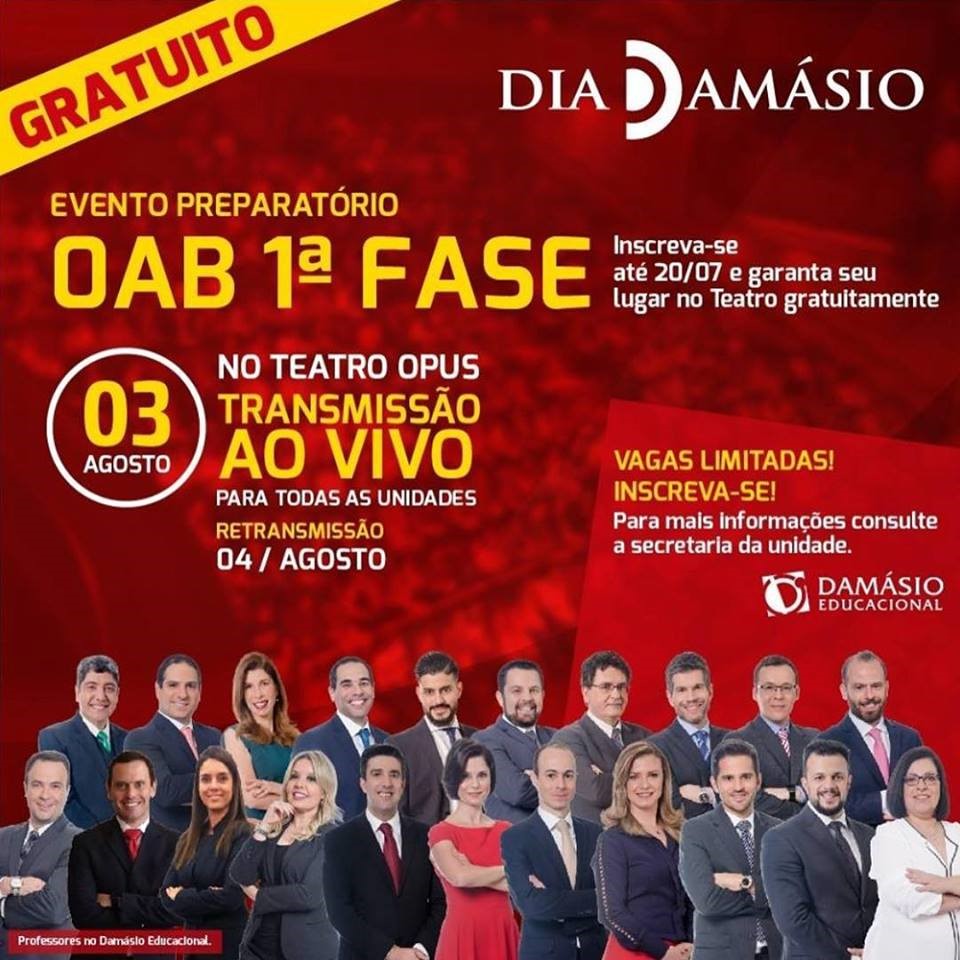 O complexo jurídico Damásio Educacional está realizando uma série de revisões gratuitas para aqueles que farão o XXVI exame da OAB, com uma Maratona de eventos gratuito.