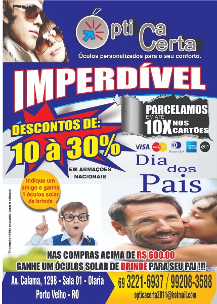 Neste mês, a Óptica Certa realiza uma super promoção para você comprar o presente do seu Papai.