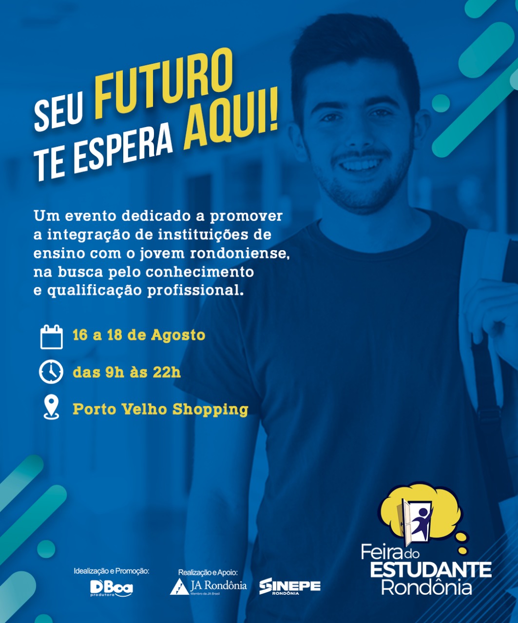Com horário de funcionamento das 10 às 21 horas, no Porto Velho Shopping, a Feira do Estudante de Rondônia já se configura, pela profissionalismo da organização e pelo qualidade dos expositores e palestrantes, como um evento que veio para deixar sua marca Calendário Oficial de Eventos do Estado.