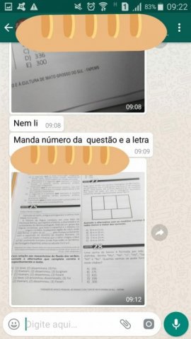 Além da mensagem via texto, o concurseiro teria enviado foto de duas páginas da prova. O horário é o mesmo do período da prova, mas não é possível afirmar se, de fato, as imagens foram feitas durante a aplicação das questões.