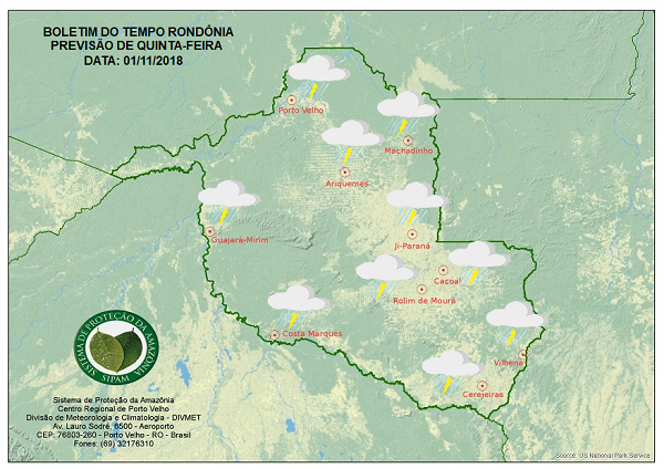 O tempo segue instável em Rondônia nesta quinta-feira. O calor e a alta umidade ainda dão condições para que muitas nuvens carregadas se formem e se espalhem por todo o Estado.
