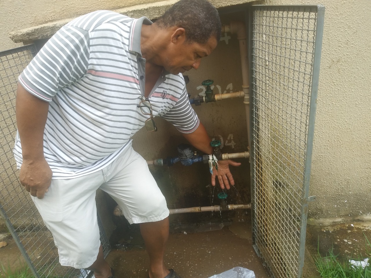 “Quase todos os relógios de agua da Caerd apresentam vazamentos", diz Isaias Inácio morador. O condomínio foi entregue aos moradores em 2015. “Esses vazamento estão assim desde 2016, cerca de 100 mil litros de água são desperdiçados diariamente, essa parte dos hidrantes é de responsabilidade da Caerd e o prédio está em risco", disse. "Já tivemos três reuniões e nada foi feito” acrescenta Isaias.