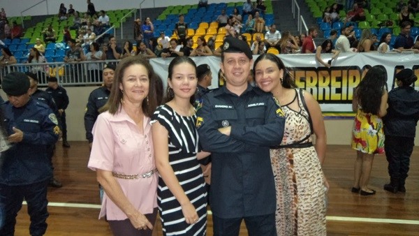 A família Souza Souza e Pacheco, a qual pertence o jornalista Wilson Souza, Célia Souza, CB PM Evandro Souza, K. Gabryela (filha) e sua noiva Erlane Pacheco, prestigiando o formando e demais guerreiros e guerreiras.