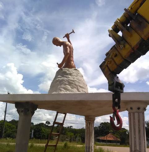 Na verdade, essa construção está sendo custeada pela Grande Loja Maçônica de Rondônia – GLOMARON. A estátua foi esculpida por um artesão da cidade de Ji-Paraná, Luiz Carlos, ela é um presente para a cidade de Porto Velho e remete ao trabalhador do estado de Rondônia (nossos destemidos pioneiros) e ao autoconhecimento. Uma alusão à obra da artista plástica, Bobbie Carlyle, que mostra um homem lapidando a si mesmo para fora da pedra bruta.