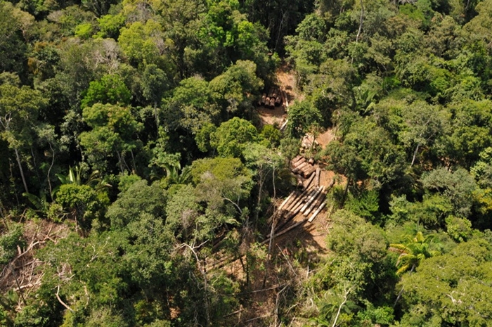 O Ibama realiza na região operação contra roubo de madeira na Flona.