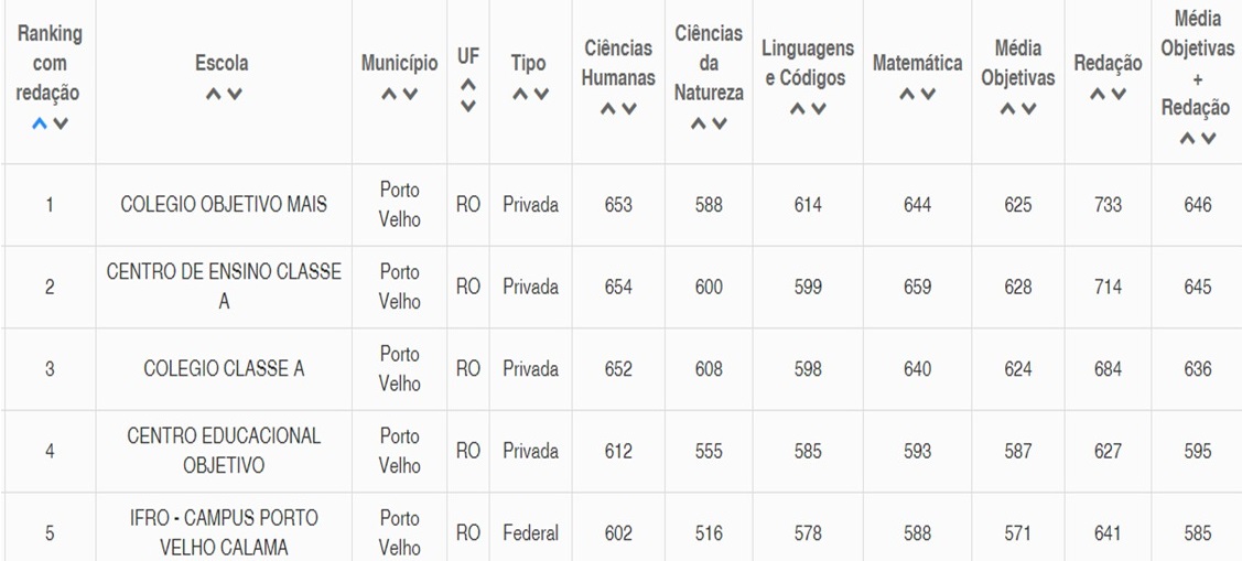 Em ranking a partir dos dados brutos do Enem 2018 publicado na manhã desta terça-feira (18), onde estão listadas as instituições privadas de Rondônia a com somatória das notas obtidas na prova objetiva e Redação, os alunos do Colégio Sapiens estão no topo e lideram as notas.