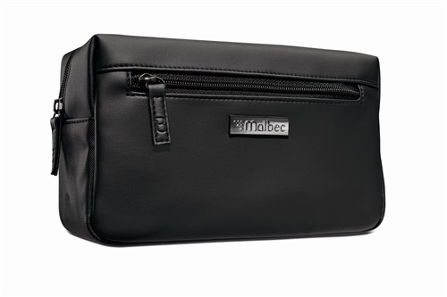 O nécessaire, desenvolvido especialmente para acompanhar o lançamento do Malbec Black, possui bolso externo e é resistente à água.
