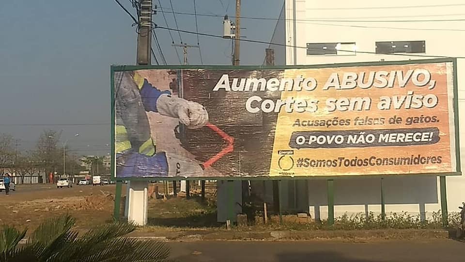 Com a mensagem: “Aumento abusivo, cortes sem aviso, acusações falsas de gato, o povo não merece” (Ipsisi literis), os outdoors foram publicados em variados pontos da cidade e mostrados o claro desconfortamento do cidadão rondoniense com a relação cliente-consumidor que vem sendo estabelecida com a Energisa.
