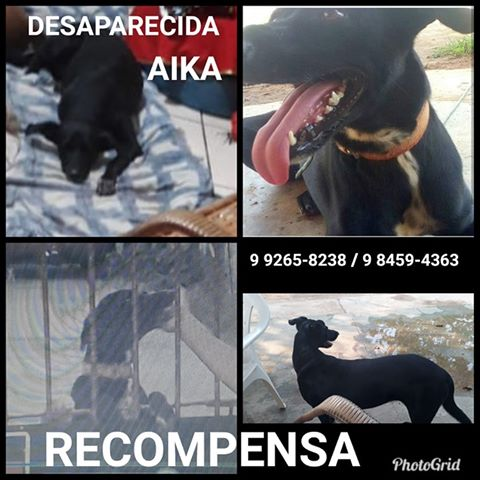 Os donos de uma cachorra vira-lata, que atende pelo nome de Aika, estão pagando uma recompensa para quem ajudar a encontrá-la. O animal fugiu de casa, localizada próxima à Pizzaria Famosa, na avenida Vieira Caúla, no Bairro Nova Porto Velho, na capital.