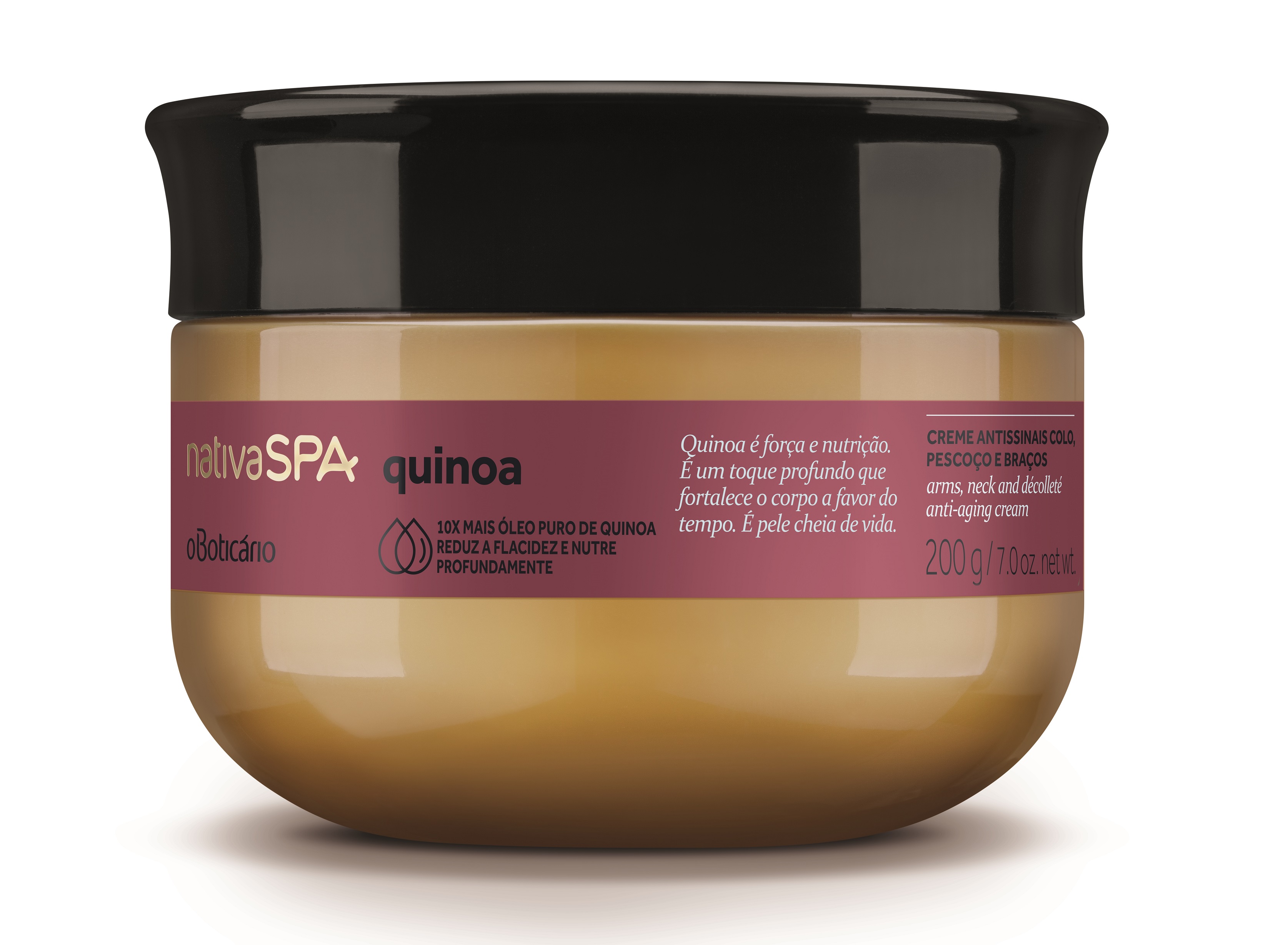 “Nativa SPA Quinoa é indicada para todos os tipos de pele, mas foi criada especialmente para pessoas que gostariam de melhorar o aspecto da flacidez e do ressecamento. Também é altamente indicada para quem busca combater e proteger as regiões que demonstram mais visivelmente o envelhecimento do corpo, como o colo, pescoço e mãos”, conta Vanessa Machado, gerente de Cuidados Pessoais do Boticário.