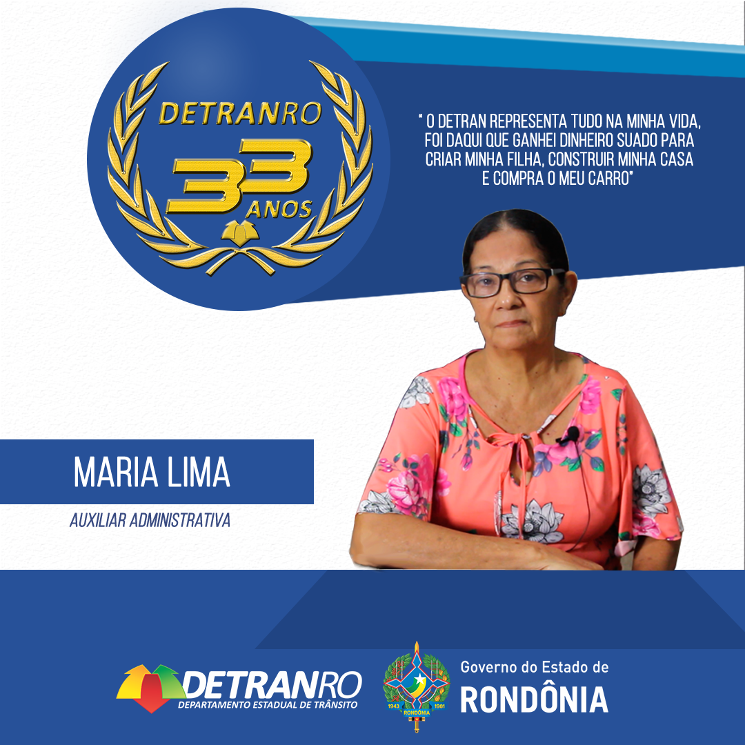 A também servidora Maria Lima foi contratada pelo Governo do Estado em 1983 para a Secretaria de Segurança Pública para o cargo de auxiliar administrativa e em 24 de setembro de 1987 foi colocada à disposição do Detran, onde permanece há 32 anos. Ela conta que o órgão representa tudo em sua vida.
