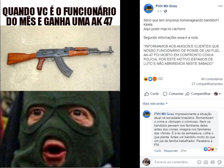 A morte em confronto com a polícia nesta última sexta-feira (25) em Porto Velho, de um homem identificado pelo nome de Emir Junior, acusado integrar um grupo criminoso armado, se tornou motivo de debate nas redes sociais após a empresa que ele trabalhava se manifestar lamentando o fato e afirmando que não abriria as portas neste sábado (26) em luto.