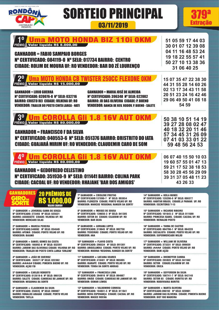 Foram muitas emoções e as Apaes de Rondônia agradecem sua generosidade. Houve ganhadores em várias cidades de Rondônia: Rolim de Moura, Vilhena, Pimenta Bueno, Guajará Mirim, Cacoal, Porto Velho, Cadeias do Jamari, Cujubim, Ji Paraná, Buritis, Ariquemes, Colorado do Oeste, Cerejeiras e Machadinho do Oeste.
