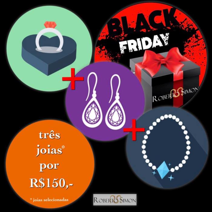 Nesta Black Friday, a Roberto Simon Joias está com uma promoção íncrivel! Onde você pode escolher três joias selecionadas* da sua preferência e do seu estilo, pagando apenas R$ 150,00.