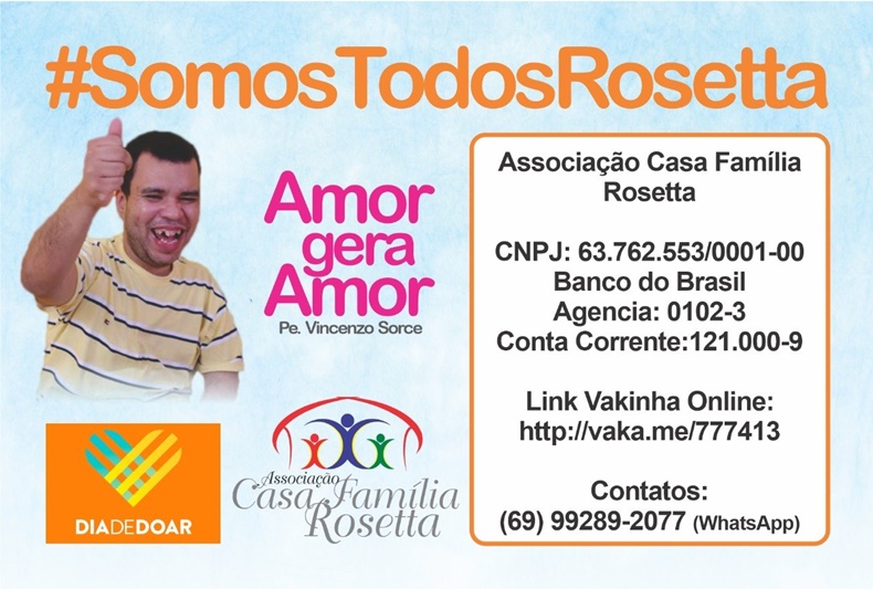 Em Rondônia, uma das instituições participantes do Dia de Doar é a Casa Família Rosetta que trabalha em nosso estado com recuperação de dependentes químicos e crianças com problemas neurológicos. Para isso, a entidade está com a campanha #SomosTodosRosetta via vaquinha online: http://vaka.me/777413 .