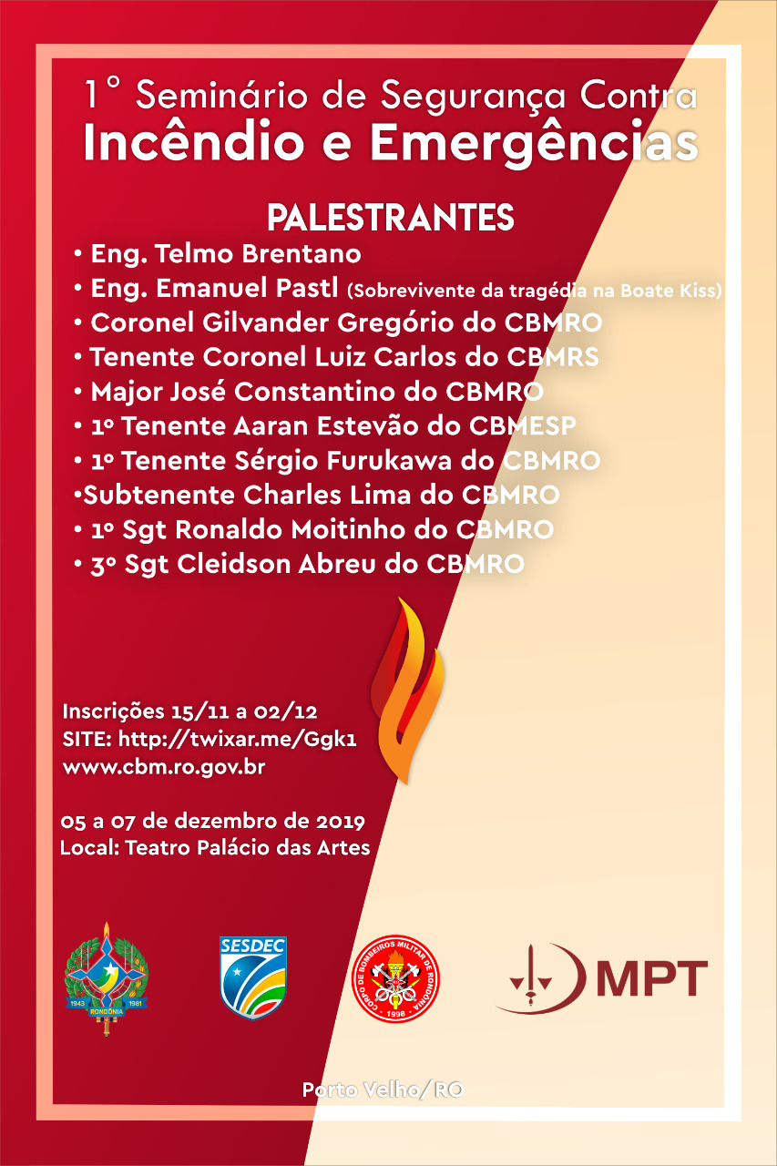 Com a participação de 10 palestrantes especialistas, de Rondônia, Rio Grande do Sul e São Paulo, o evento é uma grande oportunidade de diminuir os riscos de incêndios e emergências nas empresas