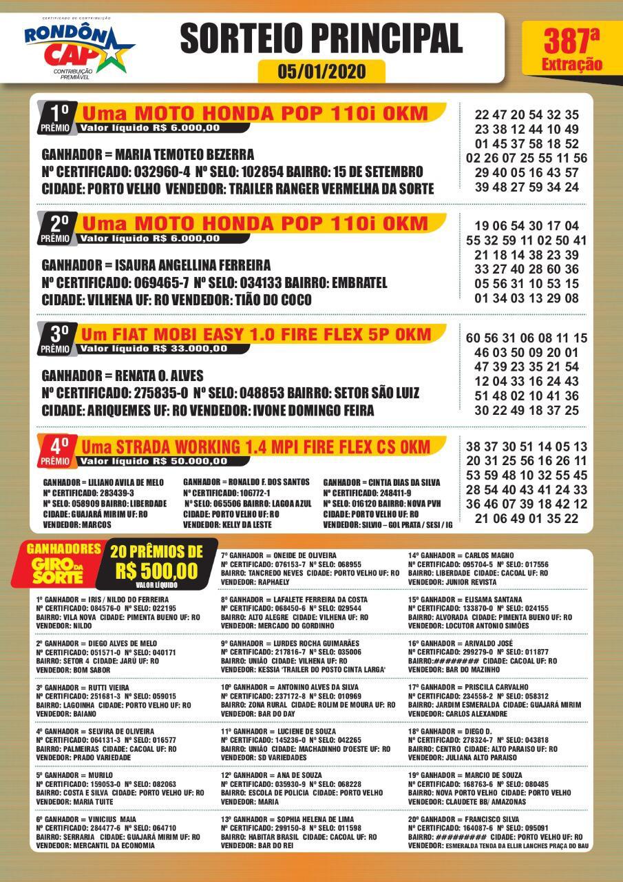 O sorteio da edição Black Fast do Rondoncap, realizada no domingo, dia 05 de janeiro de 2020 superou todas as expectativas com 161 ganhadores espalhados de norte a sul de Rondônia.