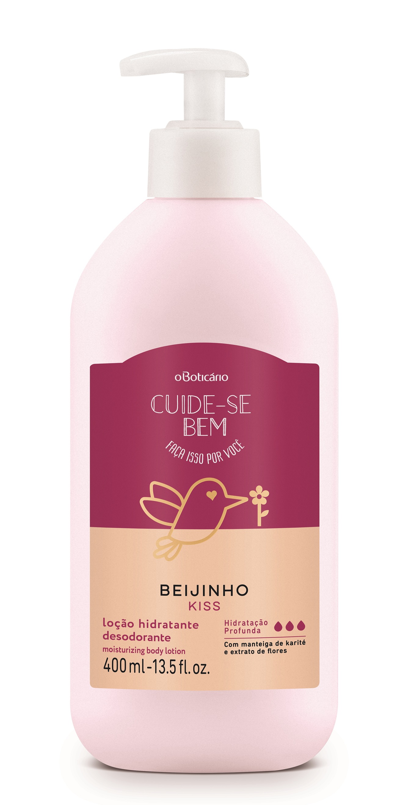 A nova linha Cuide-se Bem Beijinho, do Boticário, traz uma fragrância floral surpreendente - que dá o nome à linha - porque remete ao “Beijinho” do beija-flor: o pássaro mais apaixonado no mundo pelas flores. Com notas de saída que incluem pimenta preta e ameixa, corpo com muguet e jasmin e fundo que vai da baunilha ao sândalo, o lançamento conta com loção hidratante, sabonete, desodorante, creme para as mãos e bodysplash.