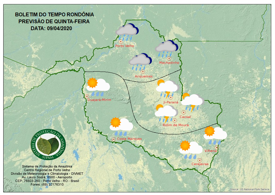 Para esta quinta-feira a previsão é de um dia de céu nublado a encoberto, com pouco sol e possibilidade de chuva a qualquer hora do dia na capital, no norte do estado e no Vale do Jamari.