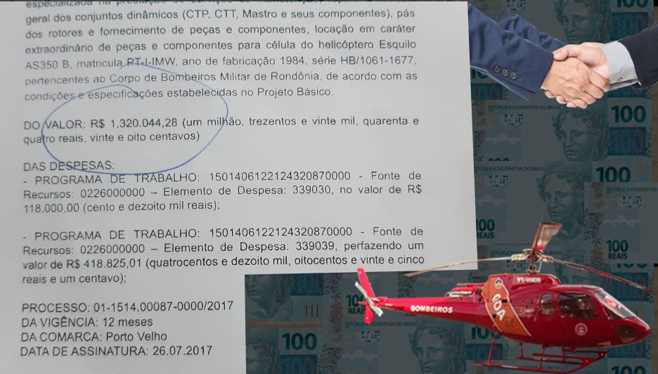Na época, o custo dessas trocas ficaria em 500 mil reais. Em consulta ao Portal Transparência do Governo de Rondônia é possível constatar que já passou, faz tempo, a previsão de se gastar “apenas” 500 mil com o helicóptero.