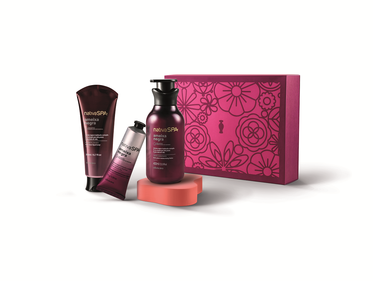 Entre as opções de kits presenteáveis, destaques para o Kit Nativa SPA Ameixa Negra, que traz sabonete líquido, loção corporal e creme para as mãos. Os produtos oferecem nutrição para todos os tipos de pele e podem ser utilizados simulando um SPA em casa, com poder do óleo de quinoa na formulação, com uma fragrância intensa, que traz o lado mais profundo da ameixa.