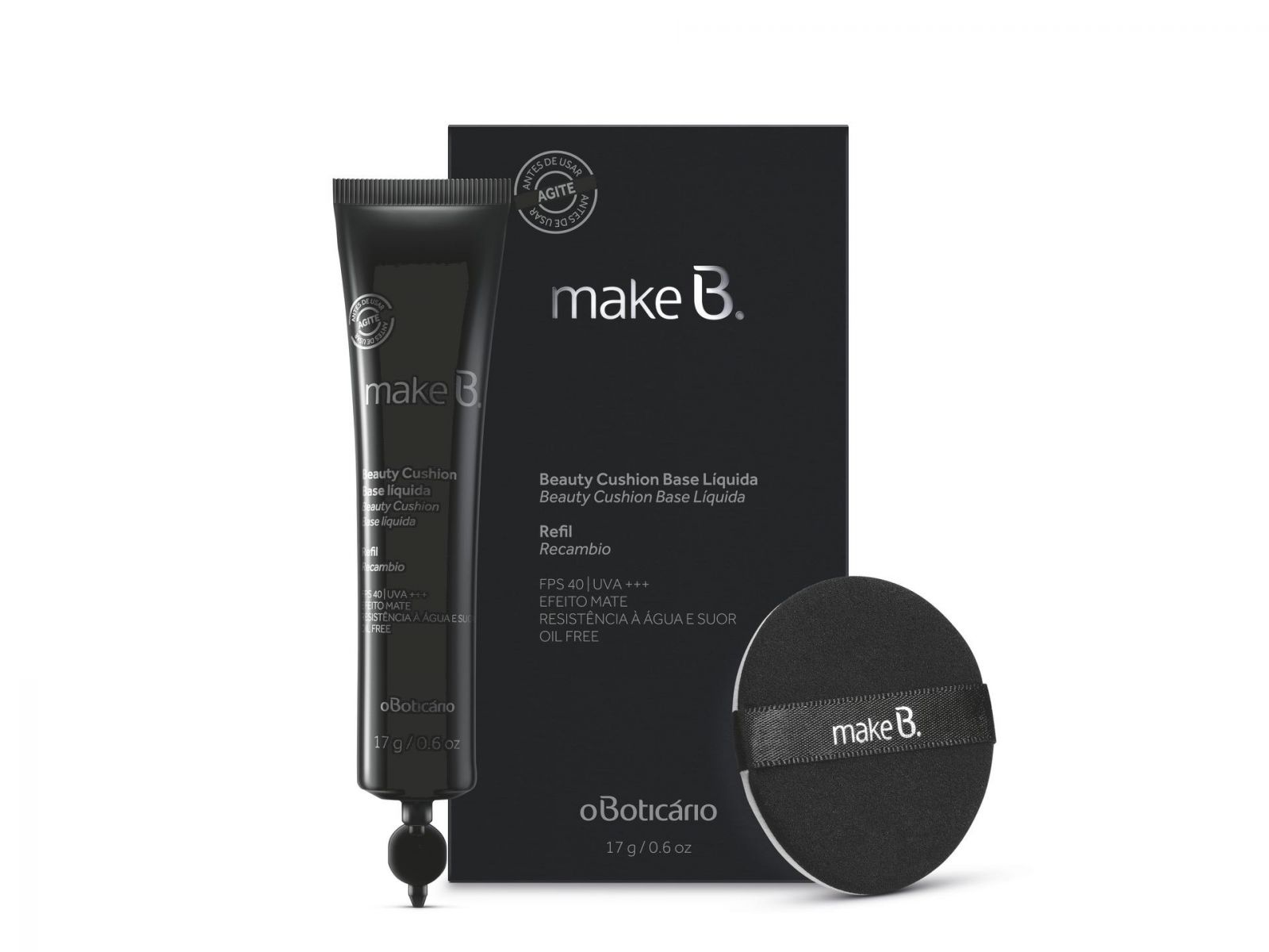Vale lembrar que quando a base acabar não é preciso se desfazer da embalagem. Make B. conta com o Refil Beauty Cushion, com o produto para reposição e um novo puff de aplicação, reduzindo os impactos ambientais da cadeia produtiva de novas embalagens e proporcionando maior economia para o consumidor.