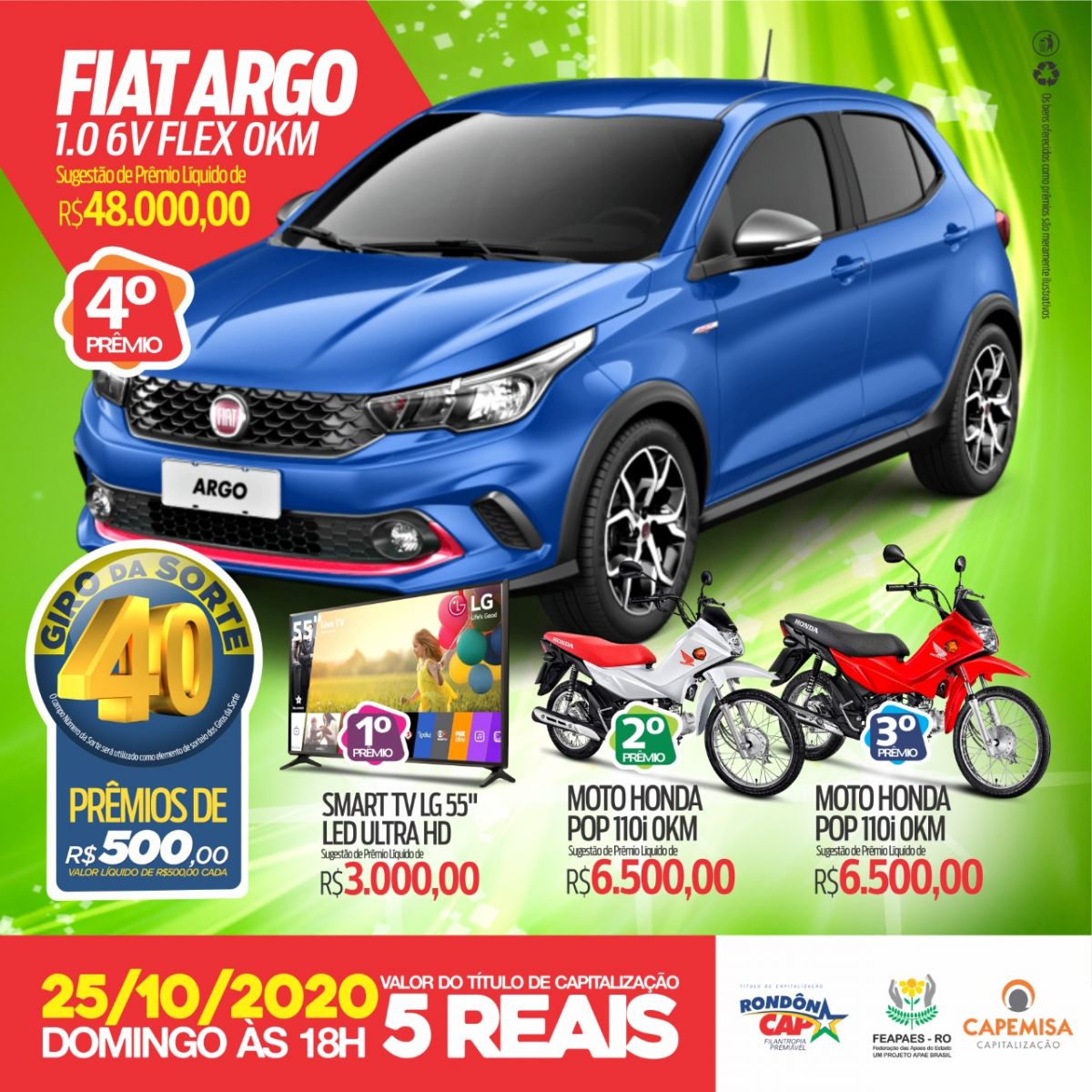 Quem ajuda as Apaes tem muita sorte, contribua você também com as Apaes de Rondônia e neste domingo o ganhador pode ser você, sabe porque? O Rondoncap deste domingo vai premiar mais de 40 pessoas!