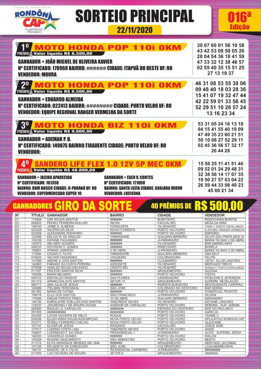 E o Rondoncap de ontem levou a sorte a vários municípios de Rondônia, Viu aí, novembro continua levando sorte aos 4 cantos do estado. Novembro de sorte Rondoncap! Na Black Friday deste domingo, tem um carro, três tv 60 polegadas e 100 giros da sorte de R$ 500 reais cada, é isso mesmo, 100 giros da sorte de 500 reais cada.