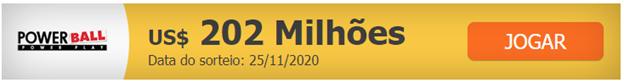 O jackpot de US$ 202 milhões da loteria Powerball EUA será sorteado, nesta quarta-feira, 25 de novembro,e todos os brasileiros que comprarem bilhetes na theLotter participarão do sorteio nas mesmas condições como se estivessem fisicamente nos Estados Unidos.
