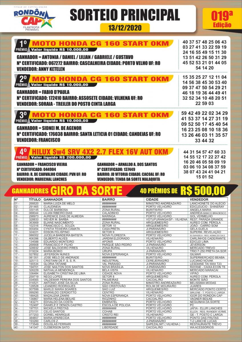 O Dezembro de prêmios Rondoncap continua premiando várias famílias por todo estado de Rondônia. E ontem sorteou vários prêmios com dupla chance de ganhar!