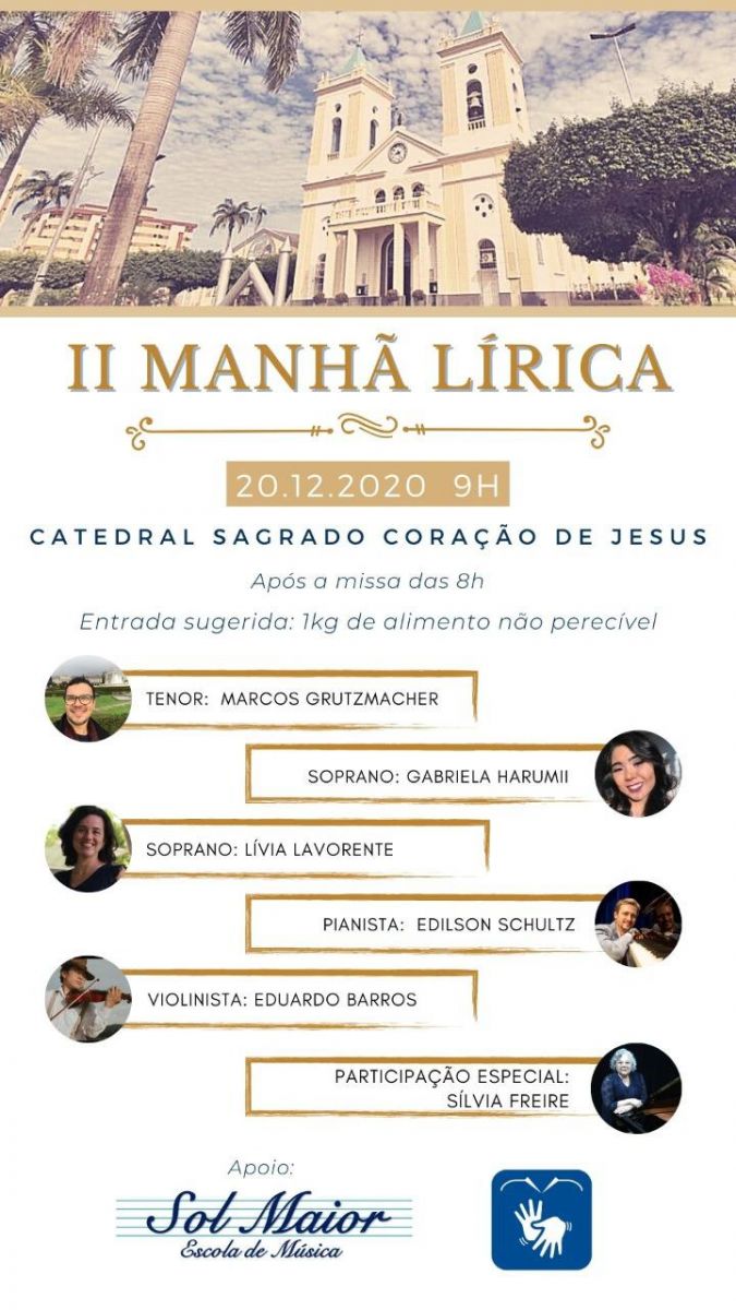 A Catedral Sagrado Coração de Jesus estará promovendo no próximo domingo (20), a II Manhã Lírica, às 09h. O evento terá canto lírico para a população rondoniense.